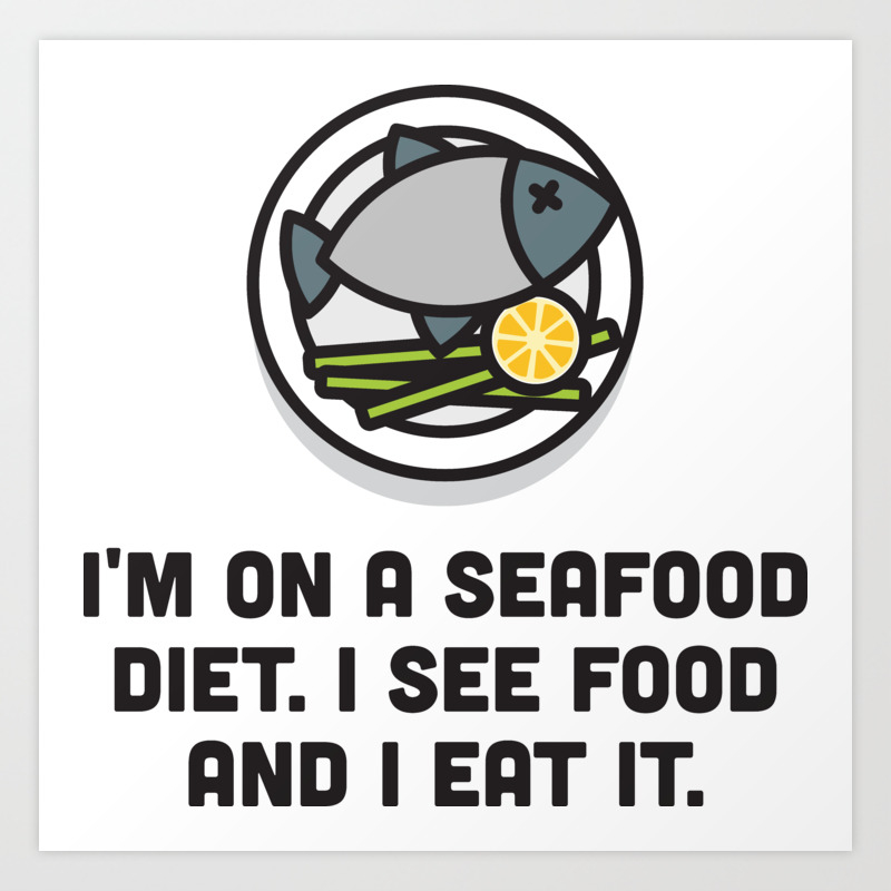 I M On A Seafood Diet I See Food And I Eat Funny Message Art Print By Polkadotsshop Society6